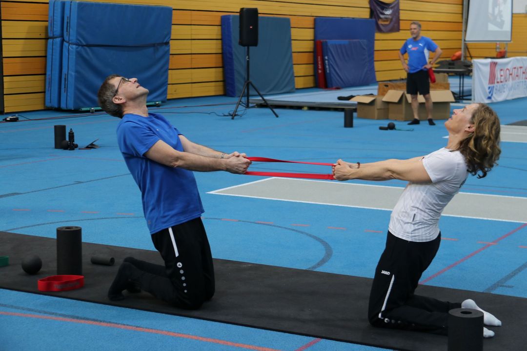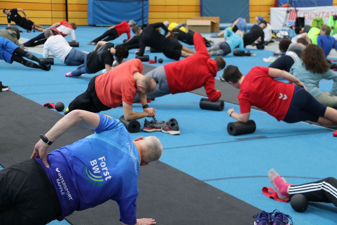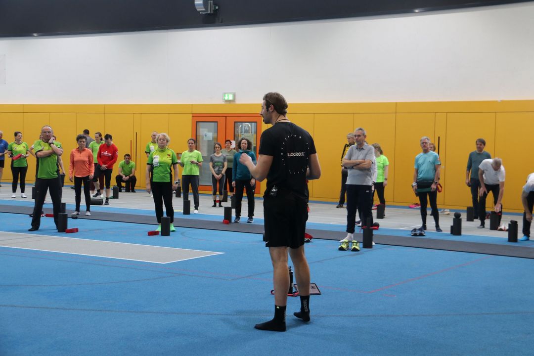 Der Kongresstag wurde durch Eberhard Mauser (Leiter des Fachausschusses Freizeit-, Lauf- und Gesundheitssport) eröffnet. Ein erster inhaltlicher Höhepunkt folgte direkt mit dem Impulsvortrag von Prof. Stefan Grau zur Verletzungsprophylaxe. Daran anschließend konnten die Teilnehmenden mit Rollen, Bällen und Bändern von BLACKROLL unter Anleitung von Luis Mayer praktische Übungen ausprobieren – ein interaktiver Auftakt, der auf große Begeisterung stieß.