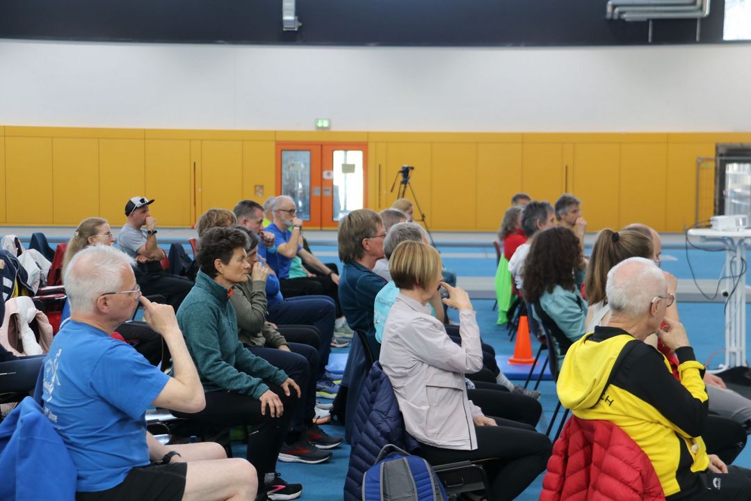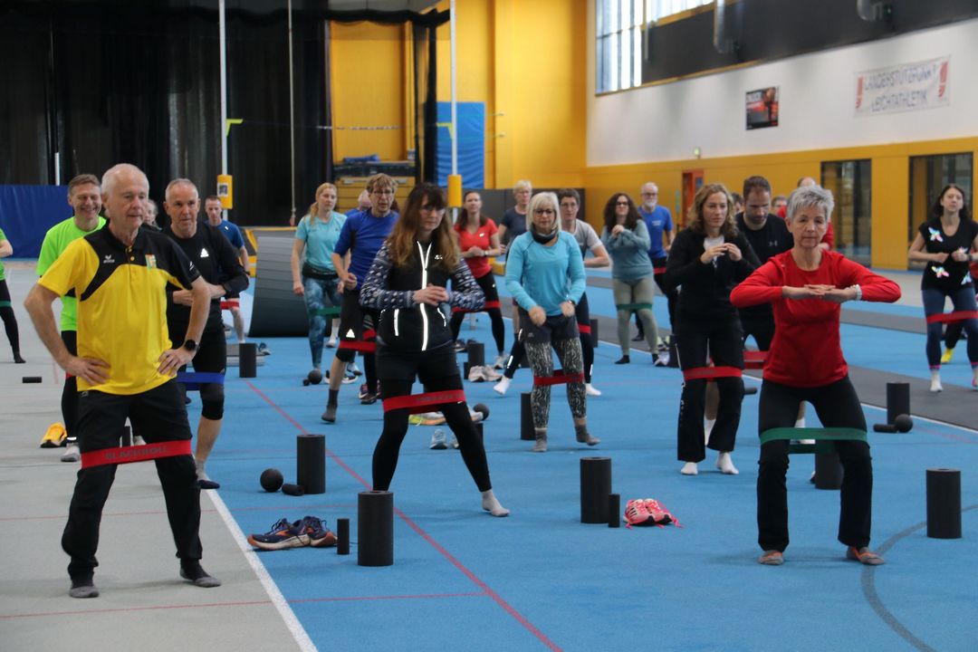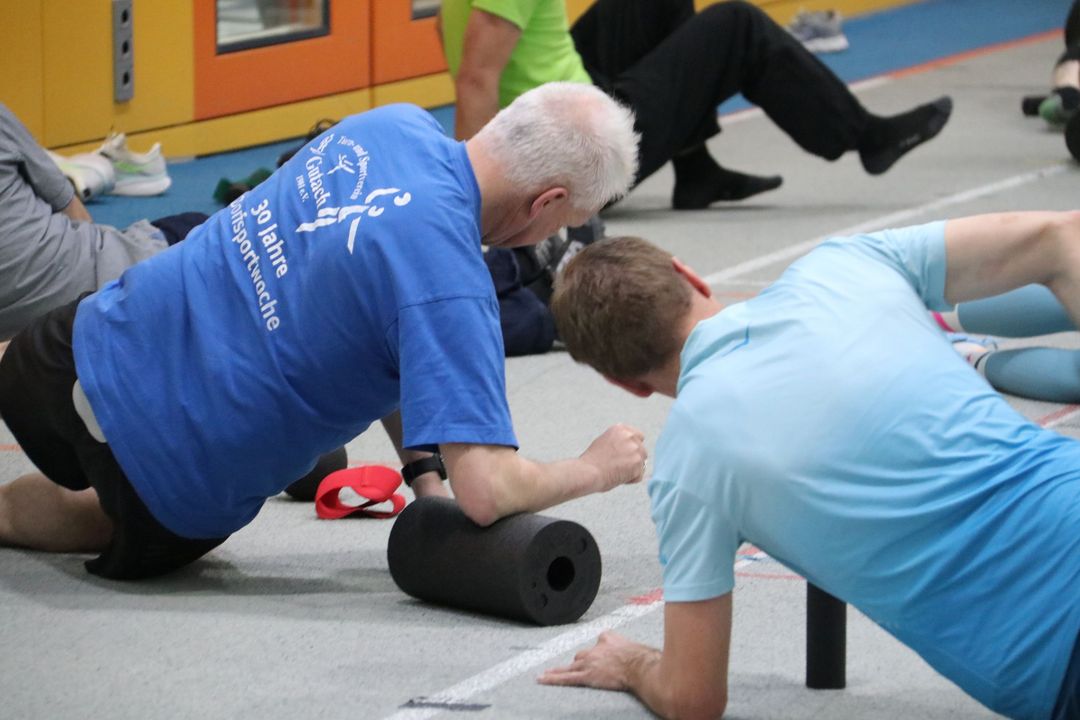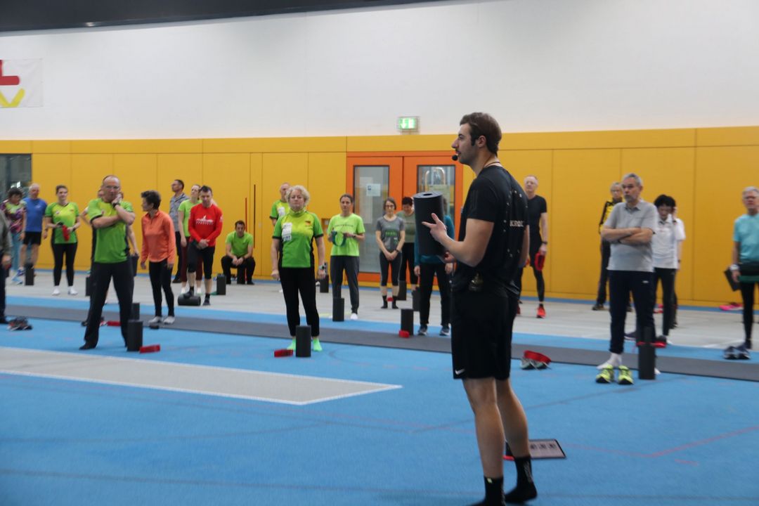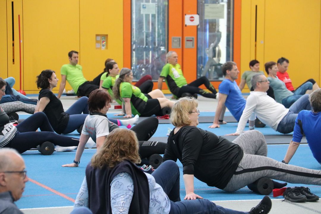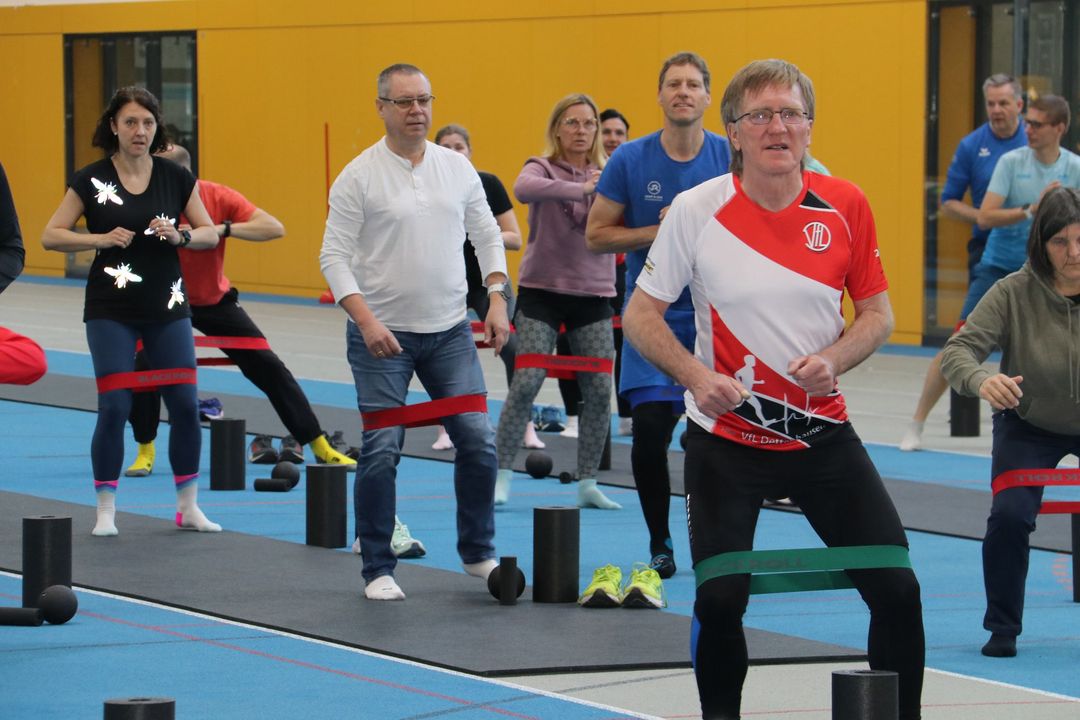 Der Nachmittag bot dann einen zweiten Workshopblock mit weiteren fünf Themen. Ob Nordic Walking zur Rückenstärkung, Trailrunning-Training im Flachland, Lauftechnik-Optimierung oder Ernährungstipps für Läufer:innen – für jede und jeden war etwas dabei. Ein besonders praxisnaher Workshop zur Beinachsenstabilisierung mit BLACKROLL rundete das Angebot ab.