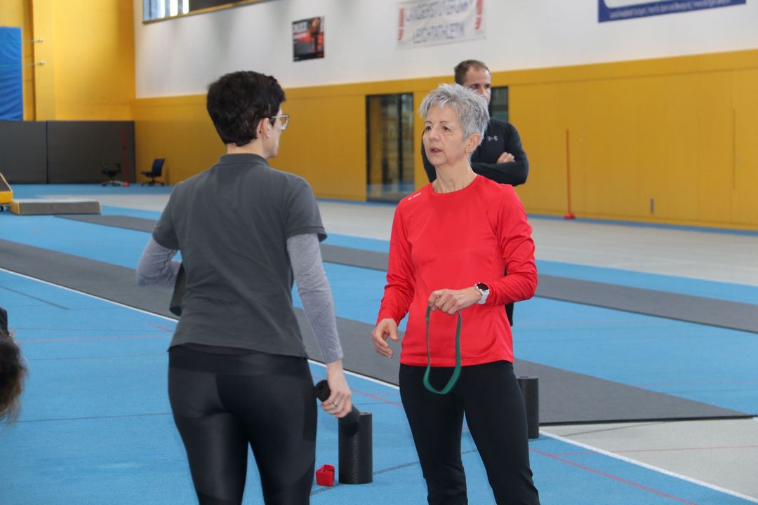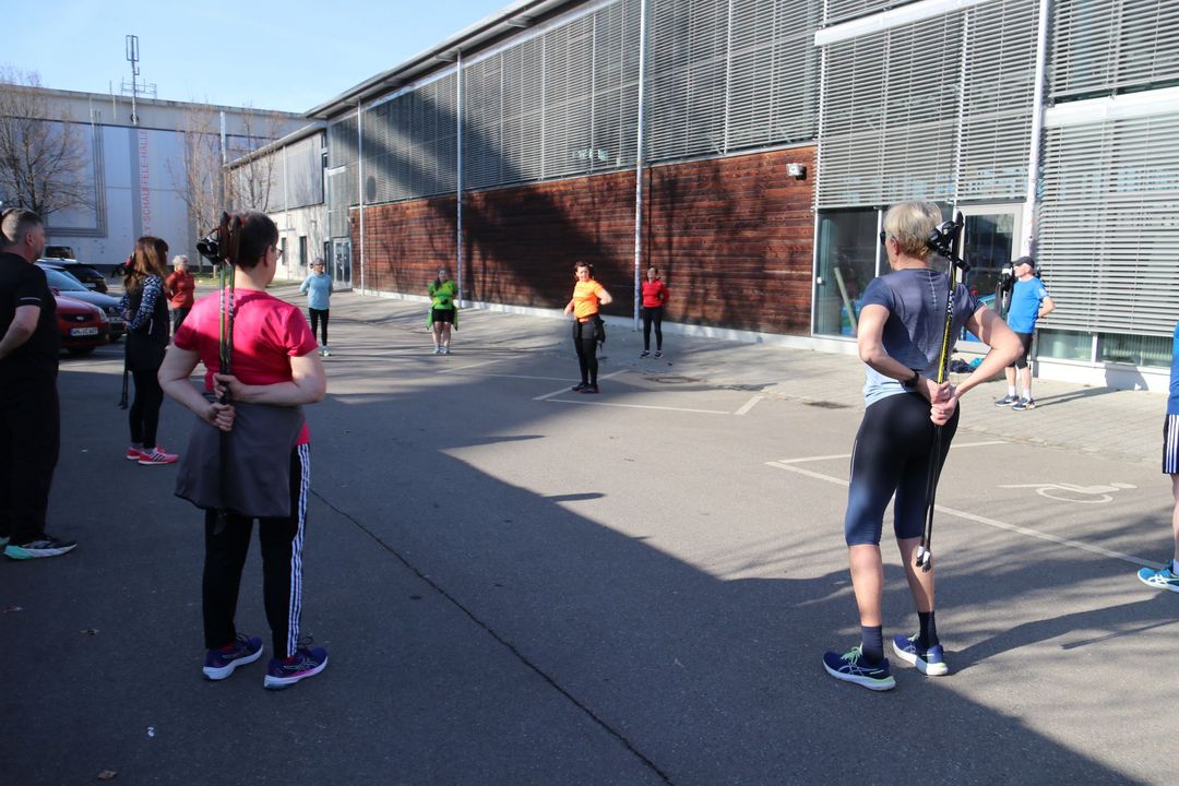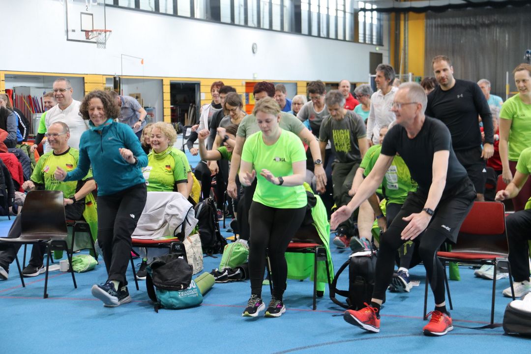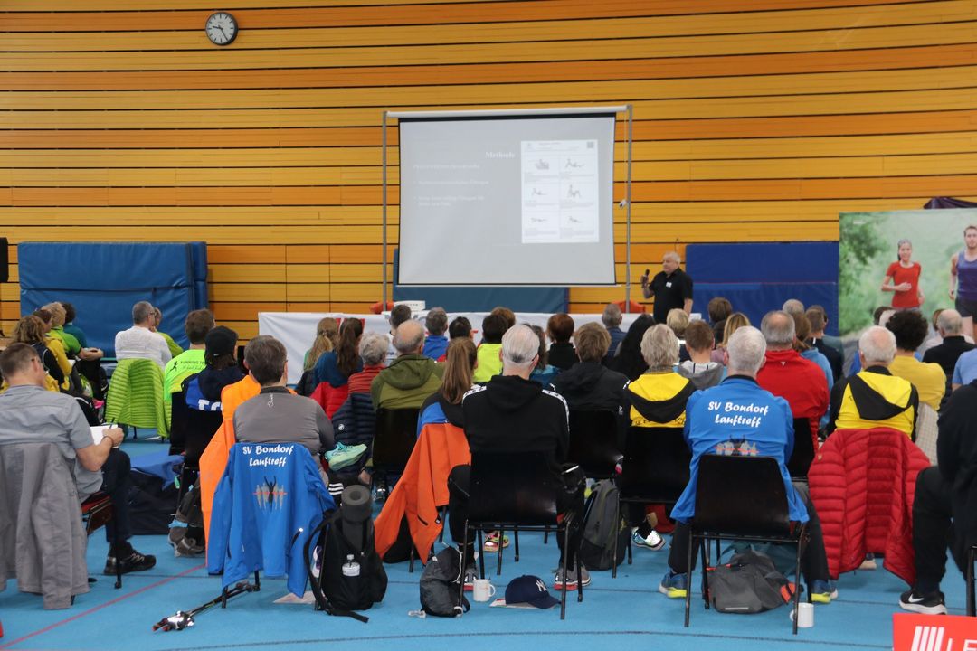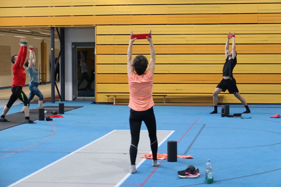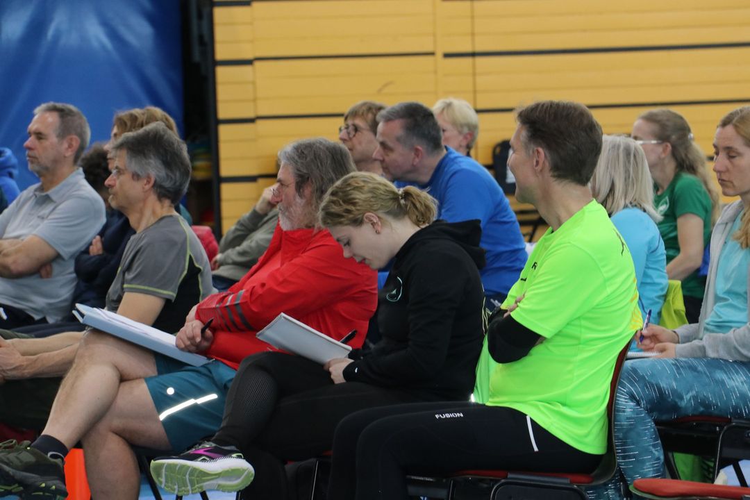 Der Nachmittag bot dann einen zweiten Workshopblock mit weiteren fünf Themen. Ob Nordic Walking zur Rückenstärkung, Trailrunning-Training im Flachland, Lauftechnik-Optimierung oder Ernährungstipps für Läufer:innen – für jede und jeden war etwas dabei. Ein besonders praxisnaher Workshop zur Beinachsenstabilisierung mit BLACKROLL rundete das Angebot ab.