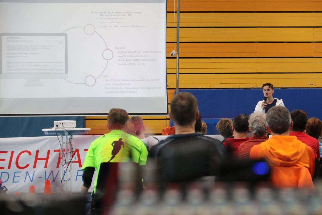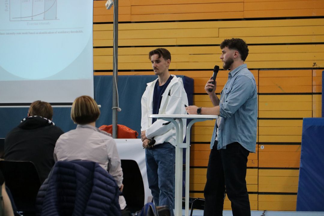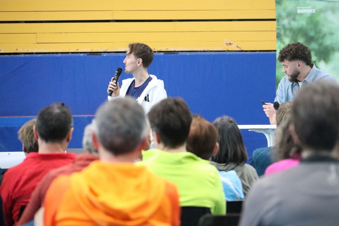 Nach der Mittagspause folgte ein weiteres Highlight: Eine lockere Talkrunde mit Olympiateilnehmer Velten Schneider und Niklas Kern, Physiotherapeut am Olympiastützpunkt Stuttgart. Sie beleuchteten Laufmythen und teilten wertvolles Wissen, das die Teilnehmenden in ihre eigene Praxis mitnehmen konnten.