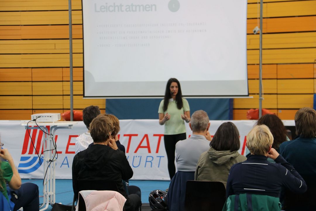Am Vormittag hatten die Teilnehmenden die Möglichkeit, aus fünf spannenden Workshops ihr individuelles Kongressprogramm zusammenzustellen. Zur Auswahl standen u. a. Atemtechnik für Läufer:innen, Yoga als perfekte Ergänzung zum Laufen oder biomechanische Hintergründe zu Carbonschuhen.